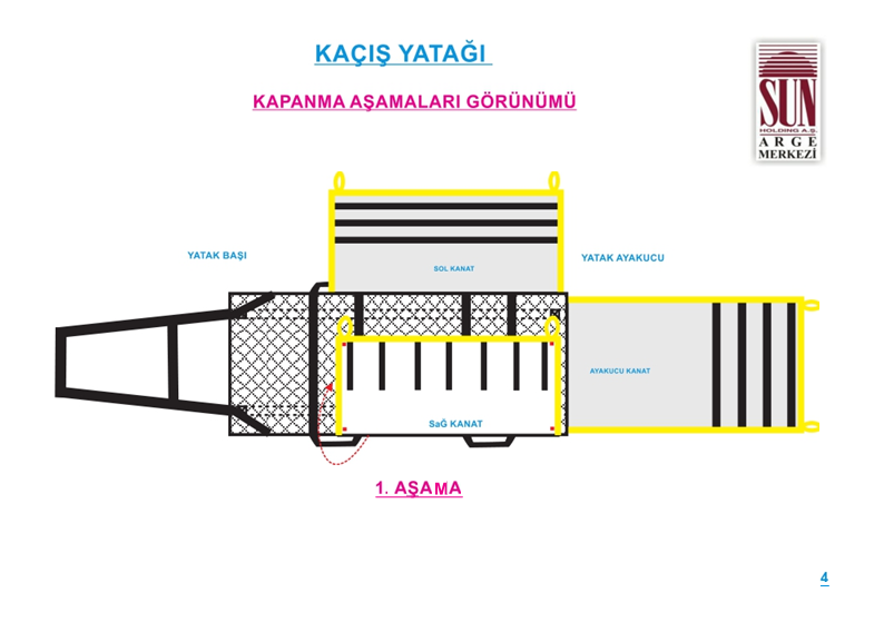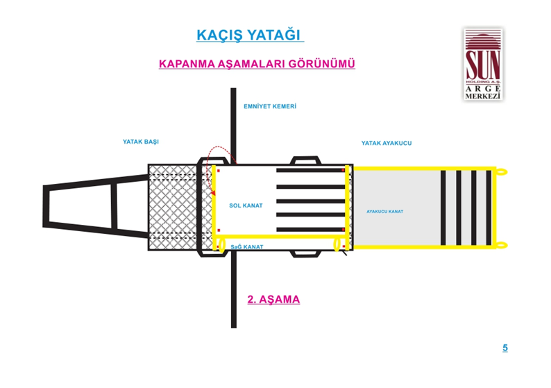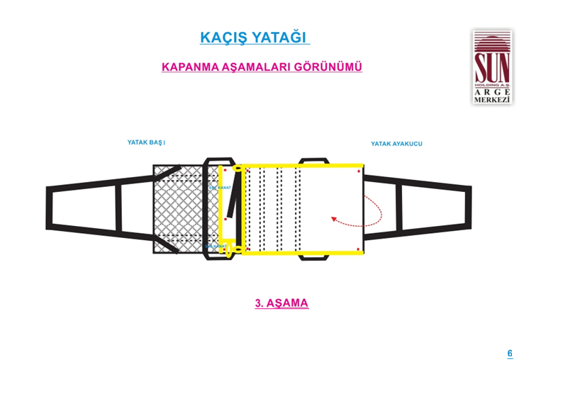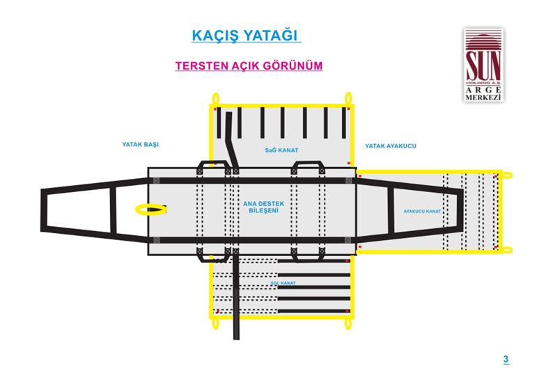 Kaçış yatağının sağlık personeli tarafından en hızlı ve doğru şekilde kullanılabilmesi amacıyla görsel anlatım içeren kullanım talimatı, ürünün kapama kanatları üzerine basılacaktır.